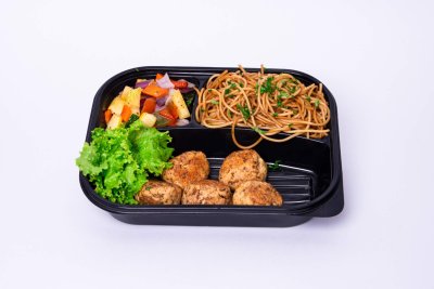 PASTA CON ALBONDIGAS DE POLLO Y VEGETALES