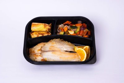 TILAPIA A LA NARANJA CON GENGIBRE, BASE DE VEGETALES Y MADURO ASADO